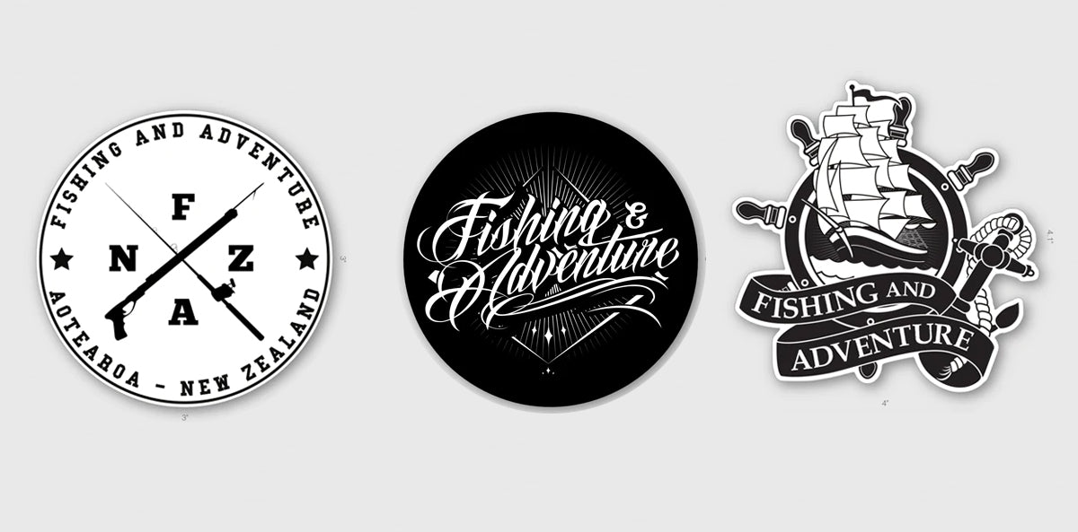 - Fishing & Adventure Logo (4"x 4")- F.A.N.Z Aotearoa (3"x 3")- Fishing & Adventure Script (3"x 3")